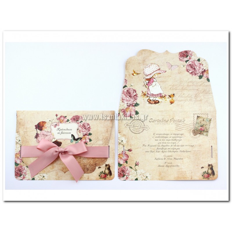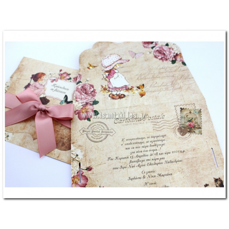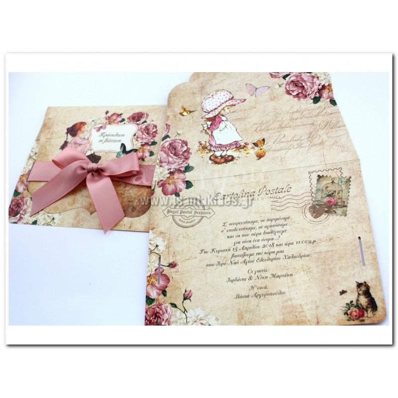 Προσκλητήριο Βάπτισης Sarah Key Vintage