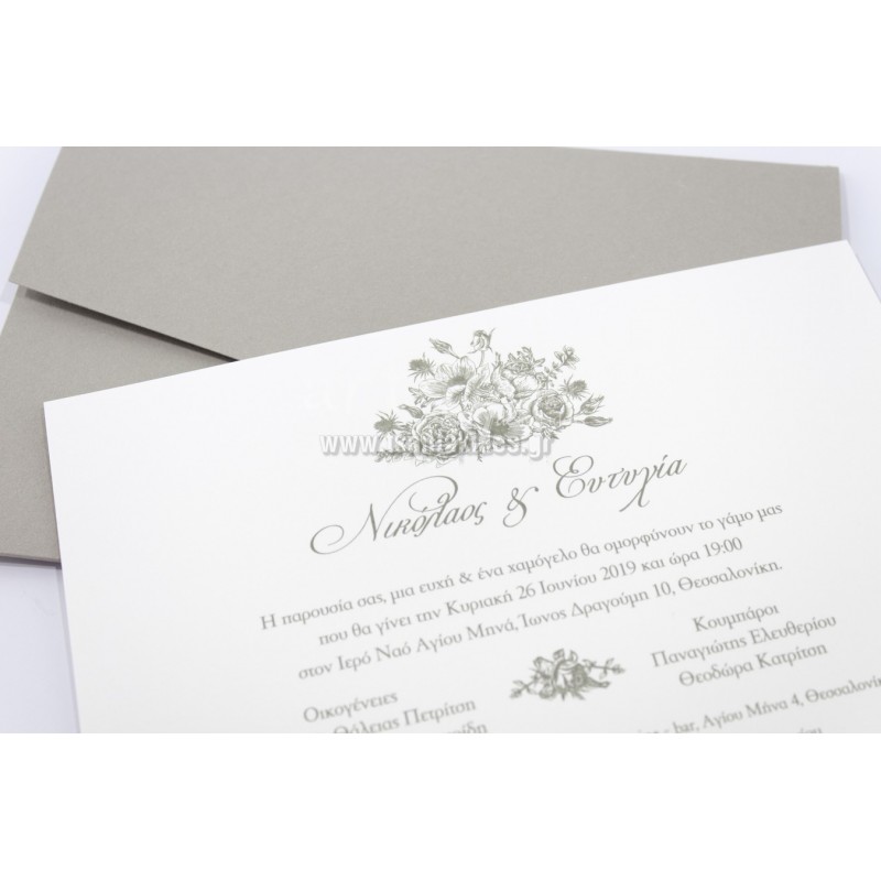 Κλασσικό προσκλητήριο γάμου σε γκρί παστέλ αποχρώσεις με minimal design.