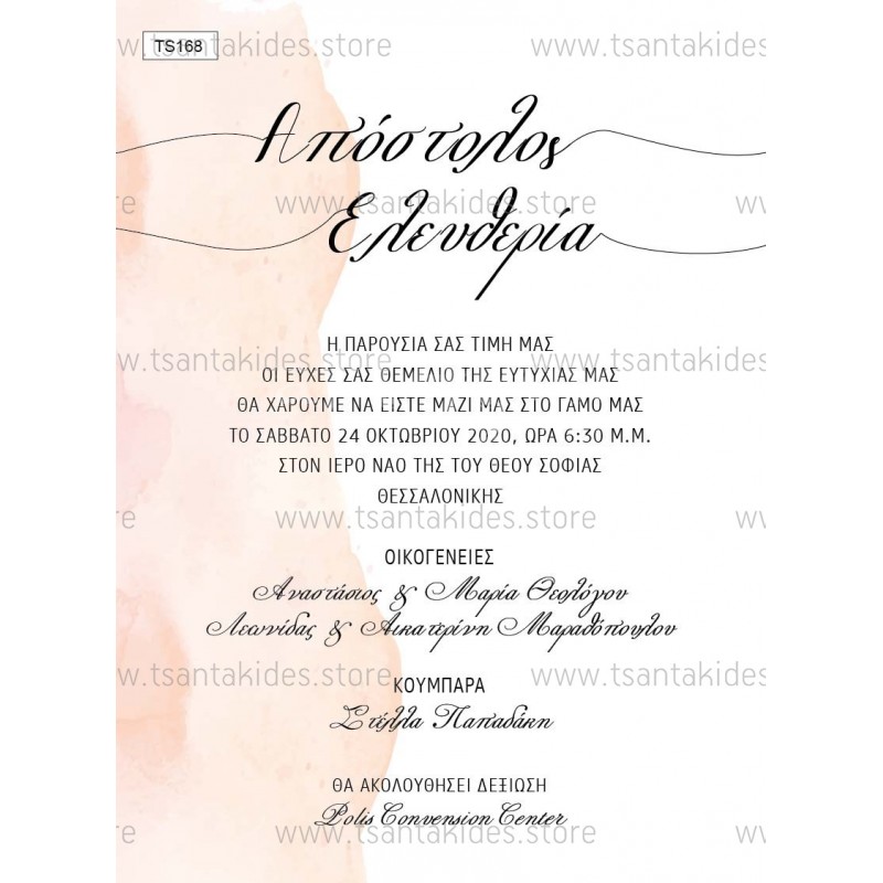 Προσκλητήριο γάμου με watercolor pastel χρωματισμούς.