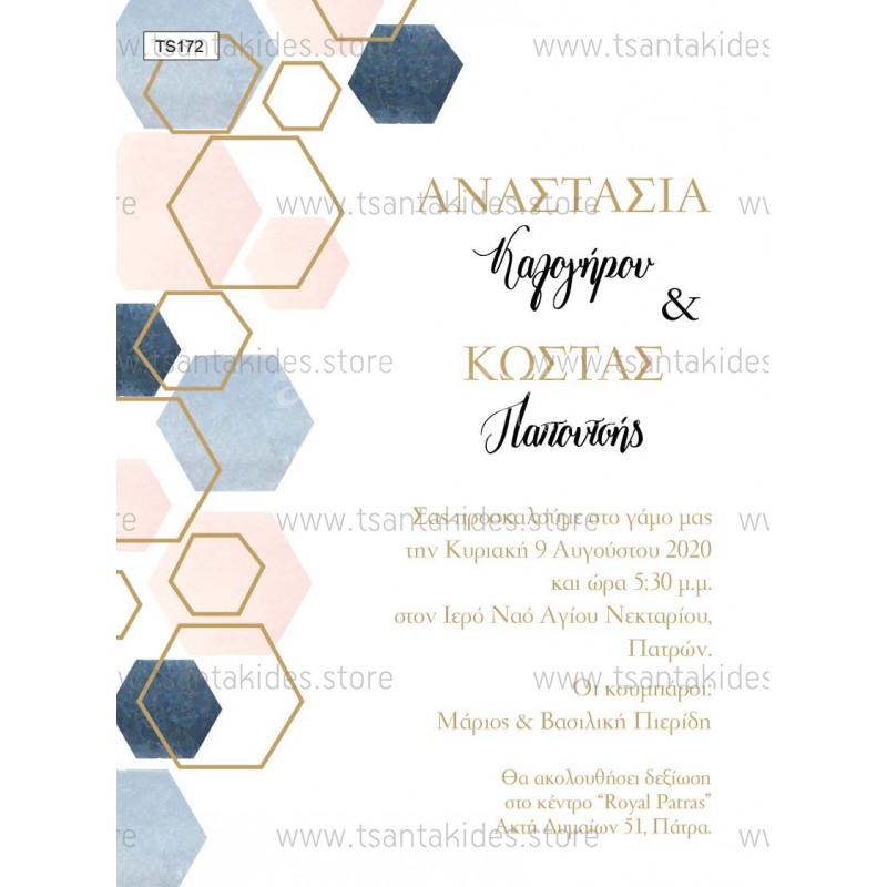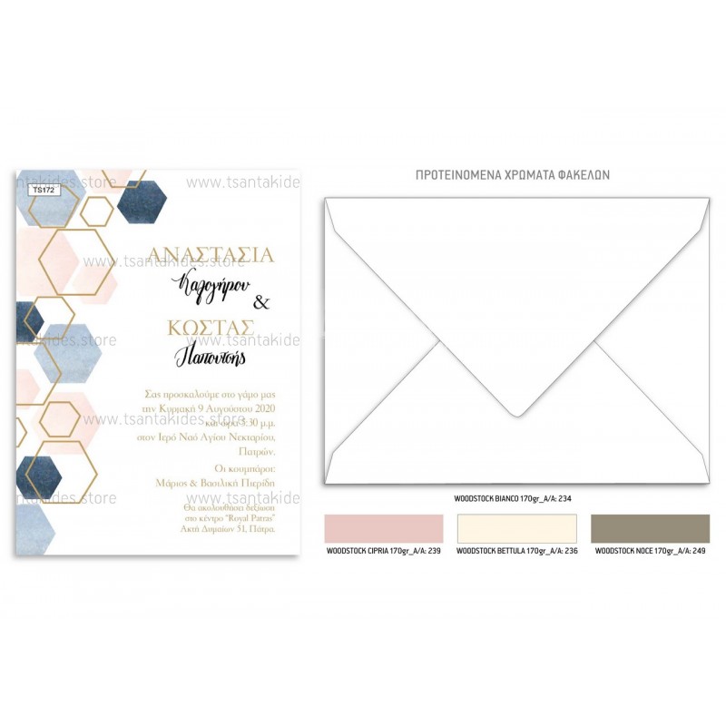 Προσκλητήριο γάμου με γεωμετρικά σχέδια και pastel αποχρώσεις