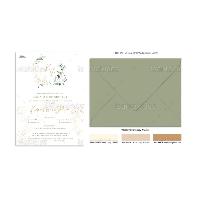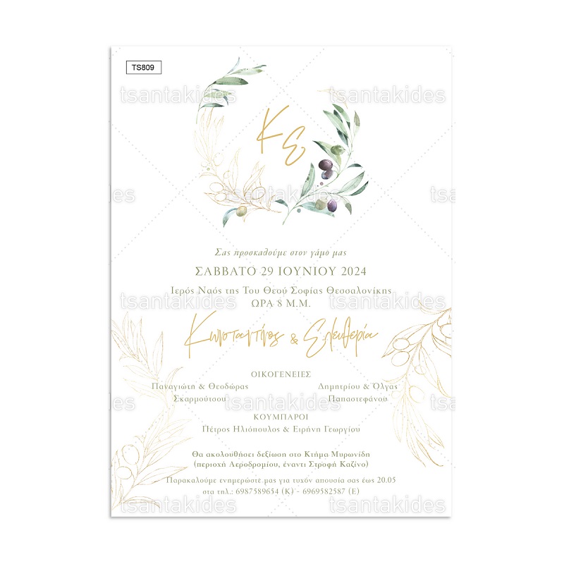 Προσκλητήριο γάμου με θέμα το στεφάνι ελιάς