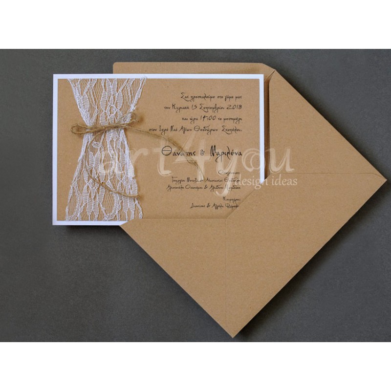 Προσκλητήριο Γάμου Vintage διπλό με δαντέλα