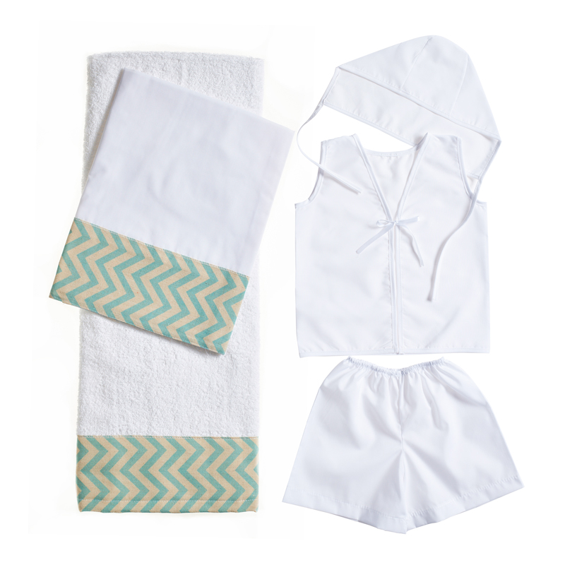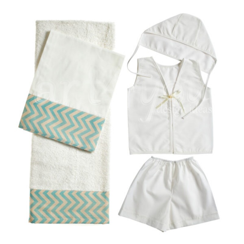 Σετ Λαδόπανο Βάπτισης Chevron σε δύο χρώματα: Λευκό & Εκρού