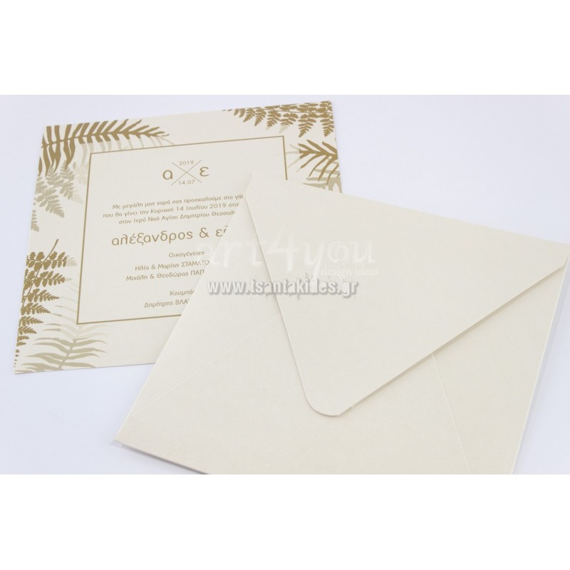 Η διάσταση του φακέλου είναι 20,1Χ20,1 cm και η κάρτα του προσκλητηρίου είναι τυπωμένη στο ίδιο χαρτί.