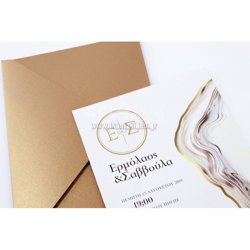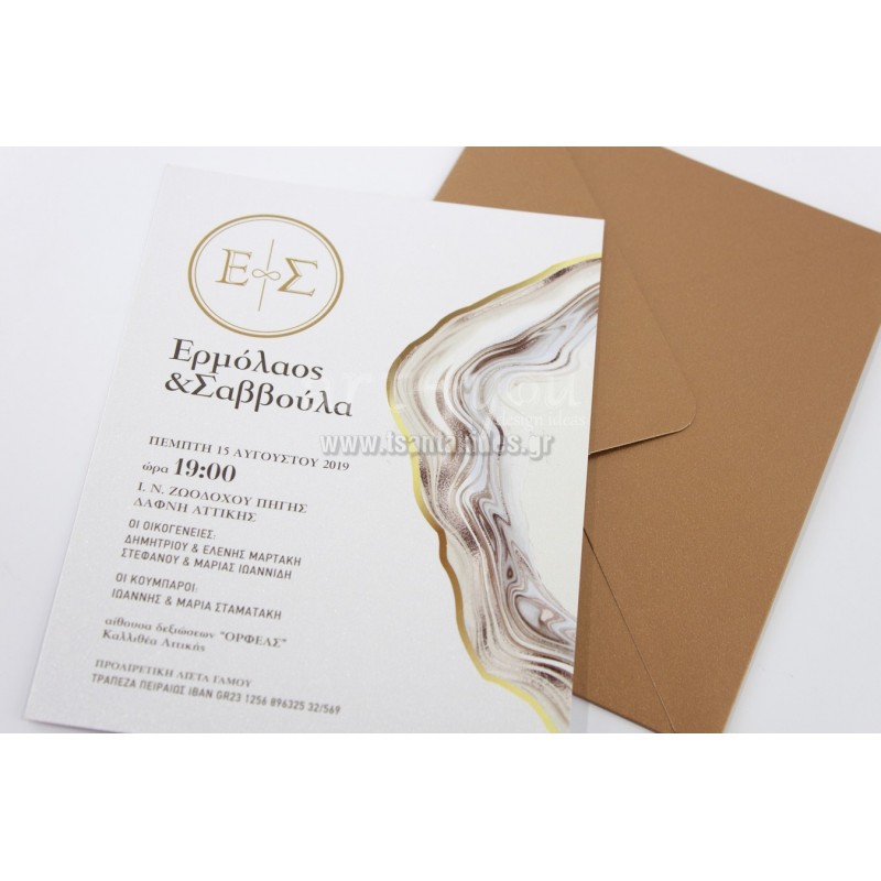 Σύγχρονο προσκλητήριο γάμου με ιδιαίτερη μεταλλική απόχρωση.