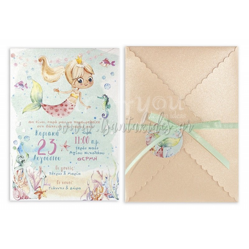 Προσκλητήριο βάπτισης για κορίτσι με θέμα τη μικρή γοργόνα.