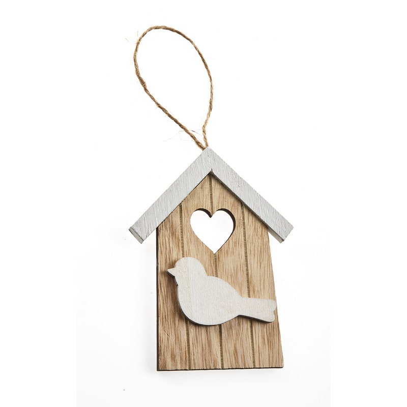 Ξύλινο σπιτάκι με πουλάκι και καρδούλα