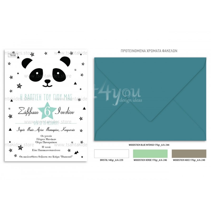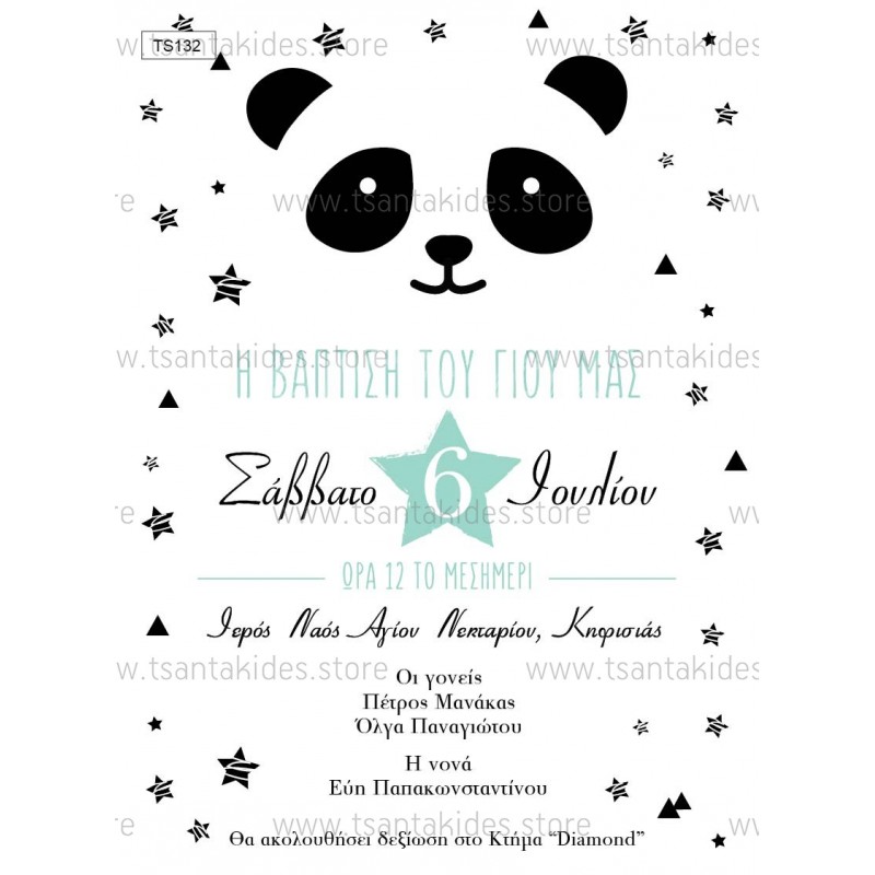 Προσκλητήριο βάπτισης για αγόρι με θέμα το panda