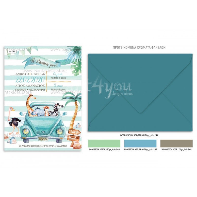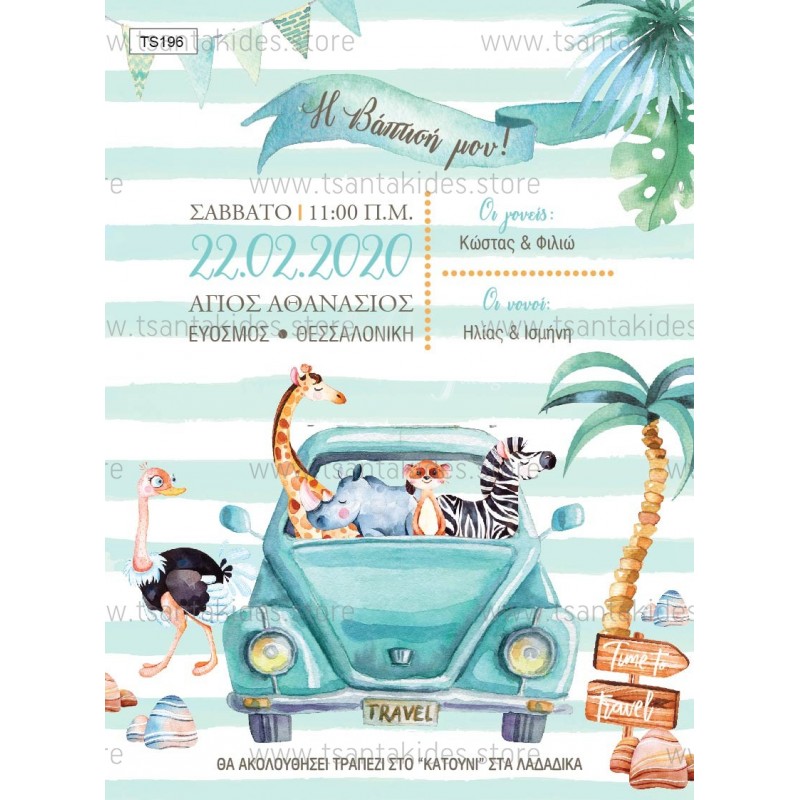 Προσκλητήριο βάπτισης για αγόρι με θέμα τα ζώα της ζούγκλας