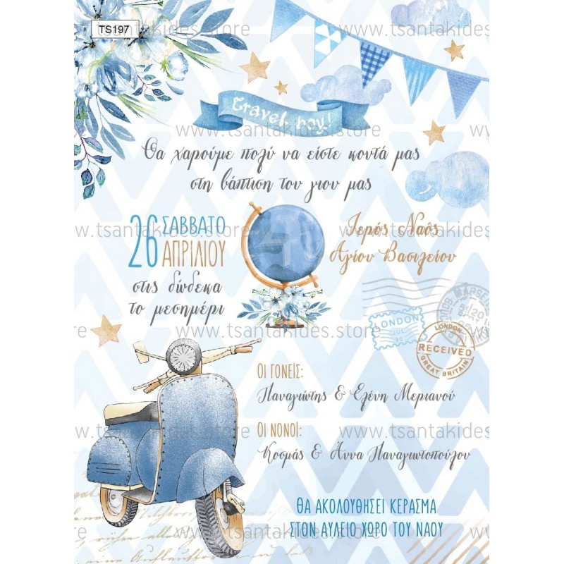 Προσκλητήριο βάπτισης για αγόρι με θέμα vespa