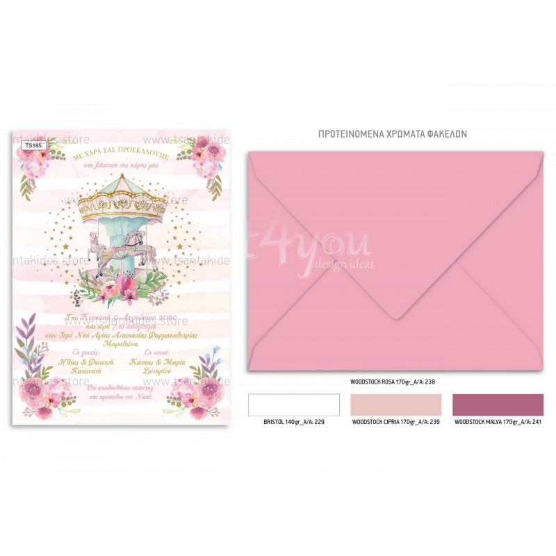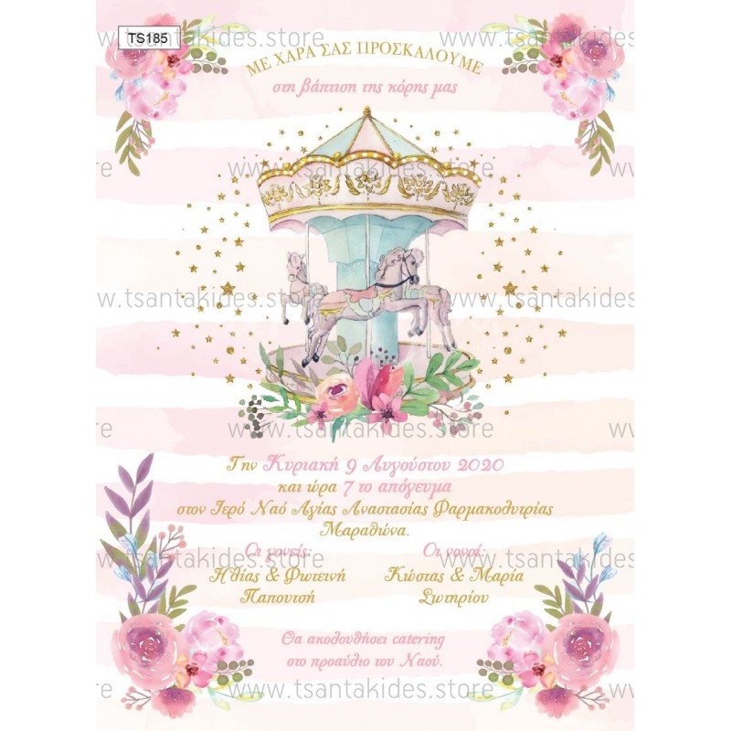 Προσκλητήριο βάπτισης για κορίτσι με θέμα το carousel.