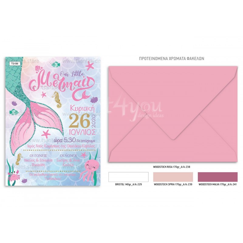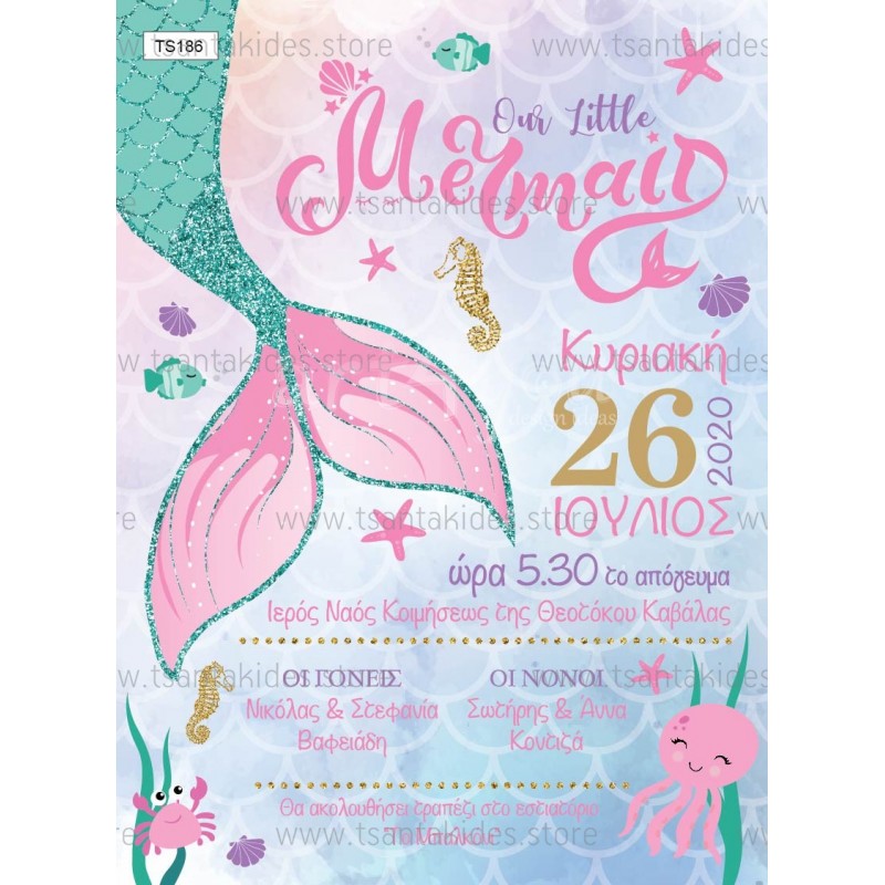 Προσκλητήριο βάπτισης για κορίτσι με θέμα τη γοργόνα
