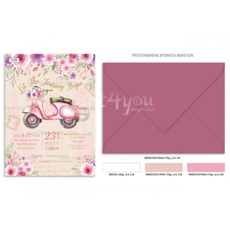Προσκλητήριο βάπτισης για κορίτσι με θέμα vespa.