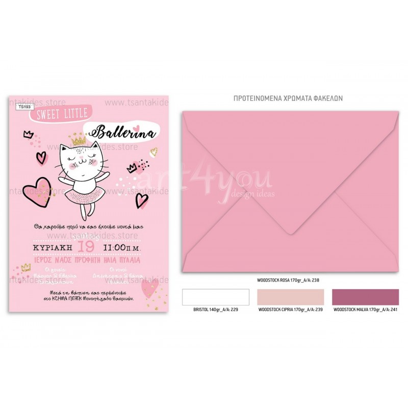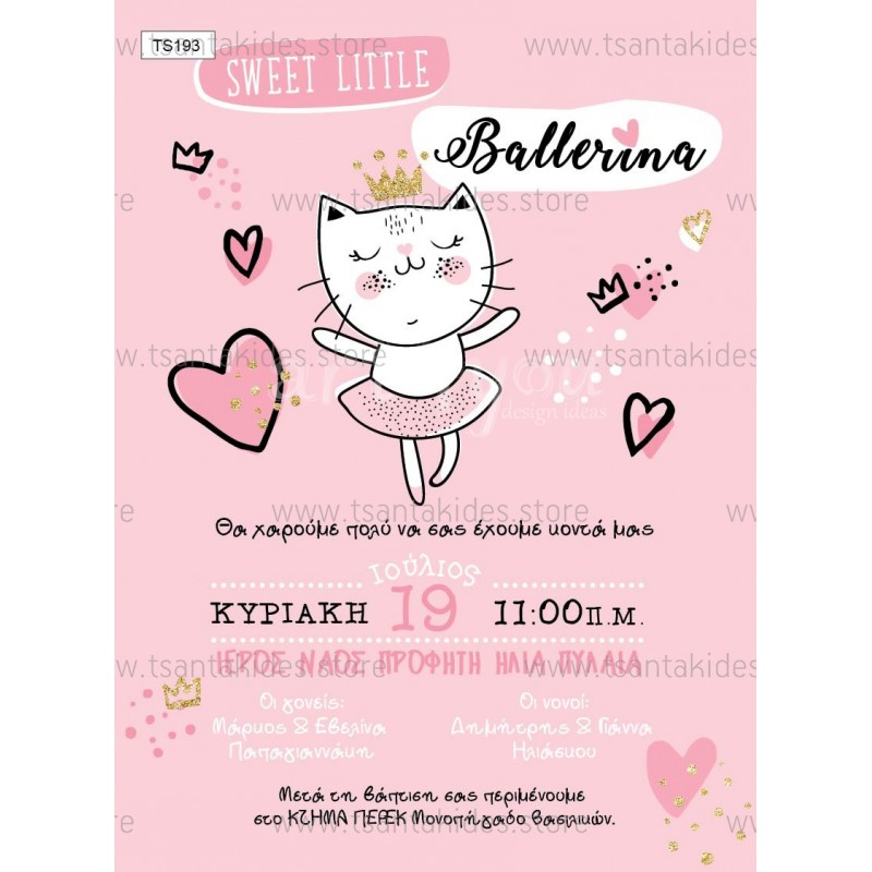 Προσκλητήριο βάπτισης για κορίτσι με θέμα τη γατούλα