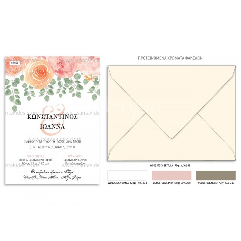 Το προσκλητήριο διαθέτει φάκελο διάστασης 19,5x14,5cm σε χαρτί της επιλογής σας από τους αναγραφόμενους κωδικούς.