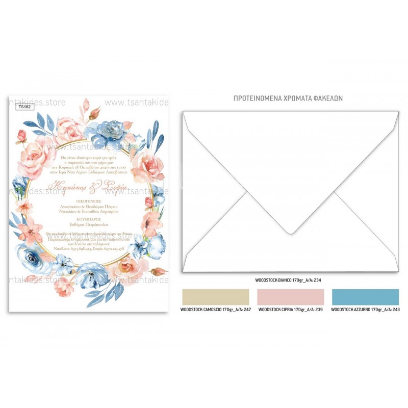 Το προσκλητήριο διαθέτει φάκελο διάστασης 19,5x14,5cm σε χαρτί της επιλογής σας από τους αναγραφόμενους κωδικούς.