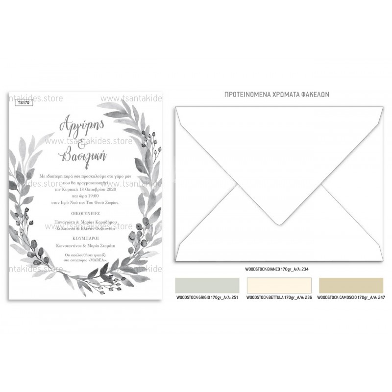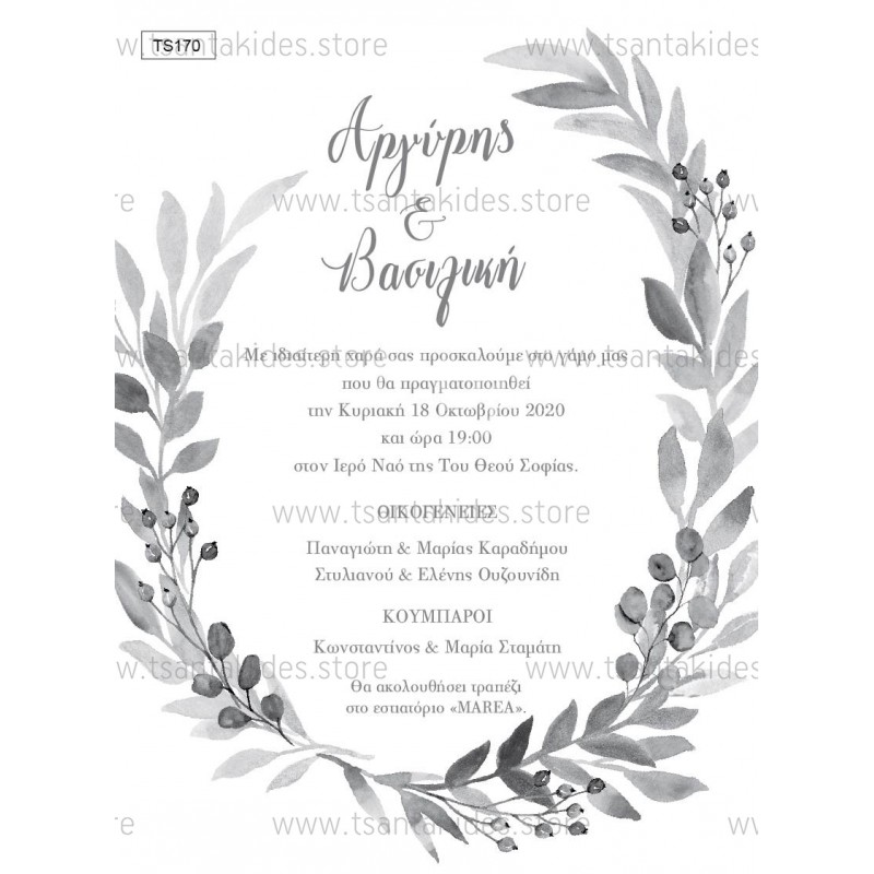 Προσκλητήριο γάμου με στεφάνι σε γκρι αποχρώσεις