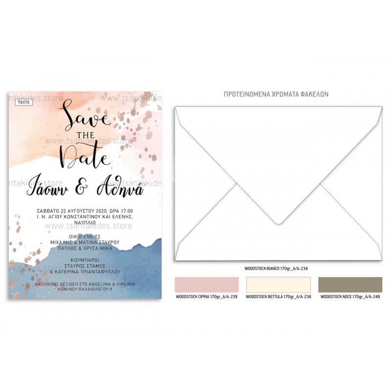 Προσκλητήριο γάμου με θέμα save the date και watercolor design
