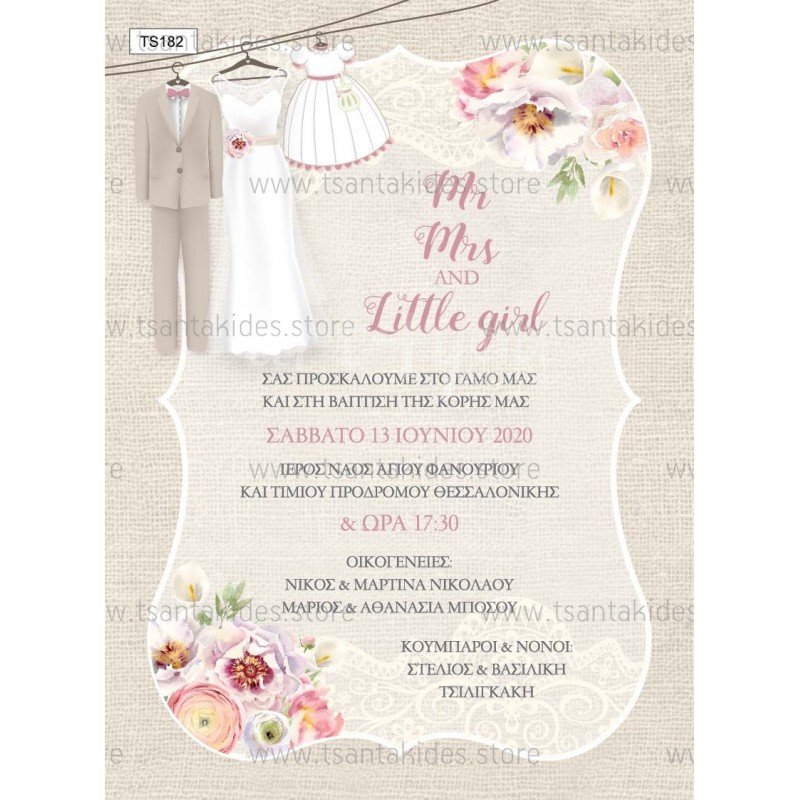 Προσκλητήριο γάμου - βάπτισης με vintage λεπτομέρειες