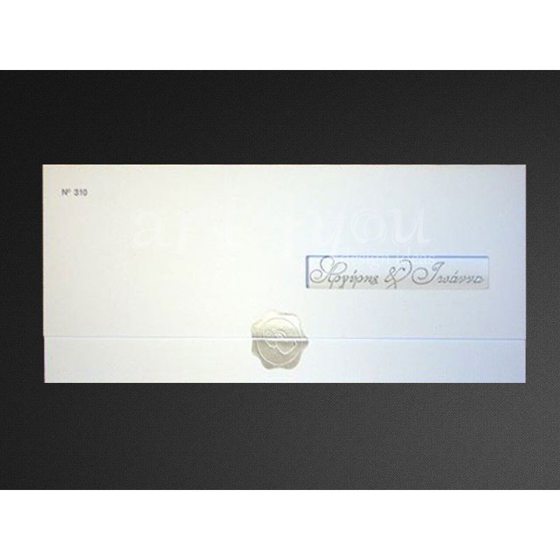 Η τιμή περιλαμβάνει το προσκλητήριο, ασημί ανάγλυφο αυτοκόλλητο για το κλείσιμο και τον ΦΠΑ.