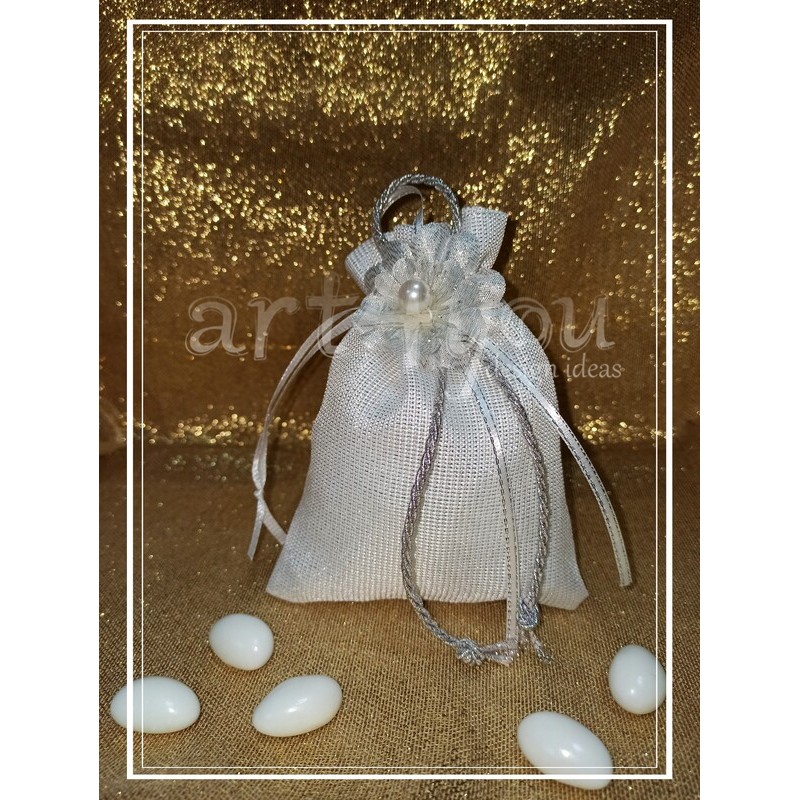 Μπομπονιέρα γάμου πουγκί λουλούδι με πέρλα