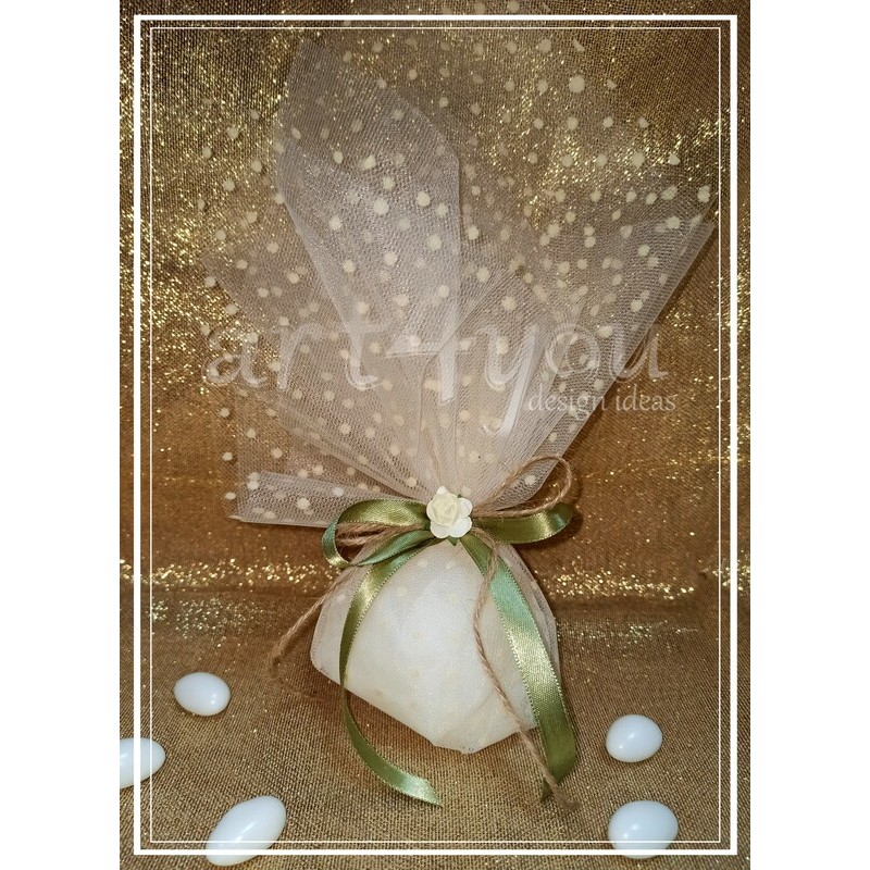Μπομπονιέρα γάμου τούλι οργάντζα,τούλι πουά και λουλούδι