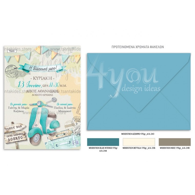 Προσκλητήριο βάπτισης για αγόρι με θέμα vespa