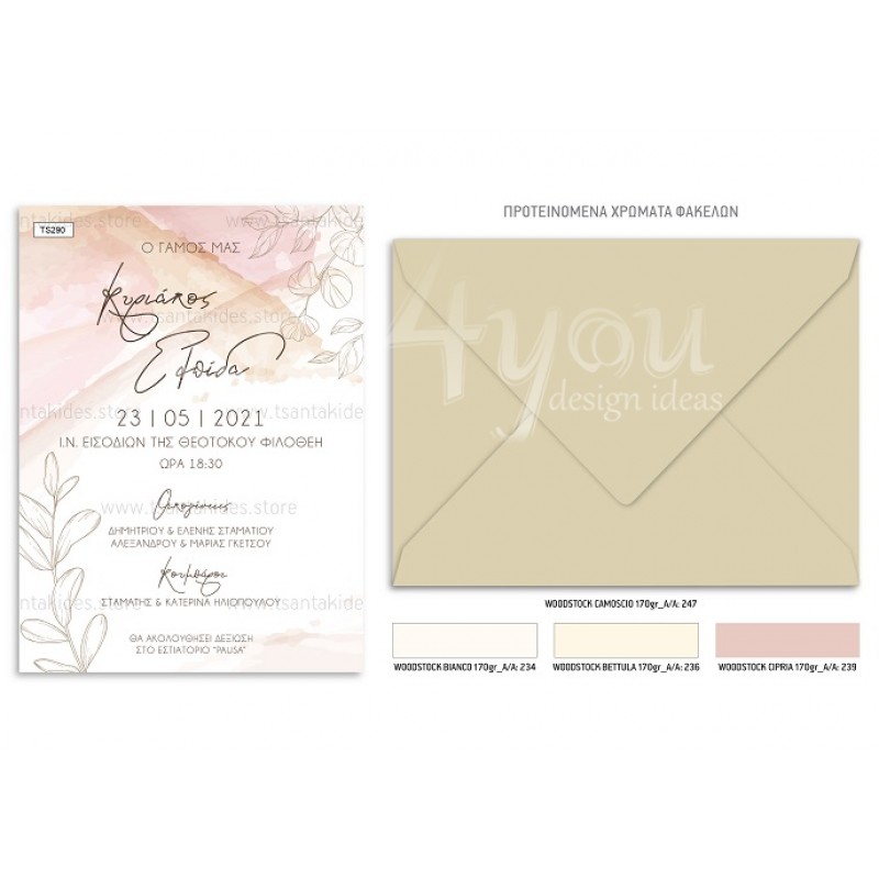 Το προσκλητήριο διαθέτει φάκελο διάστασης 19,5x14,5cm σε χαρτί της επιλογής σας από τους αναγραφόμενους κωδικούς.