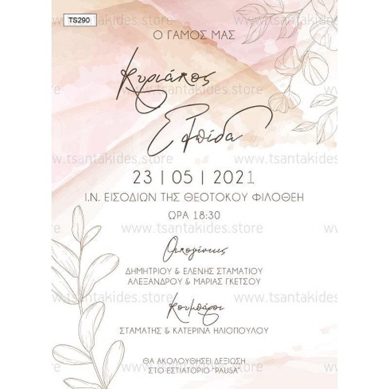 Προσκλητήριο γάμου με watercolor και γραμμικά κλαδιά.