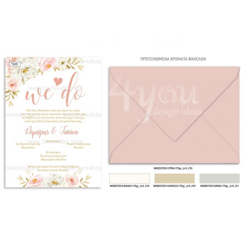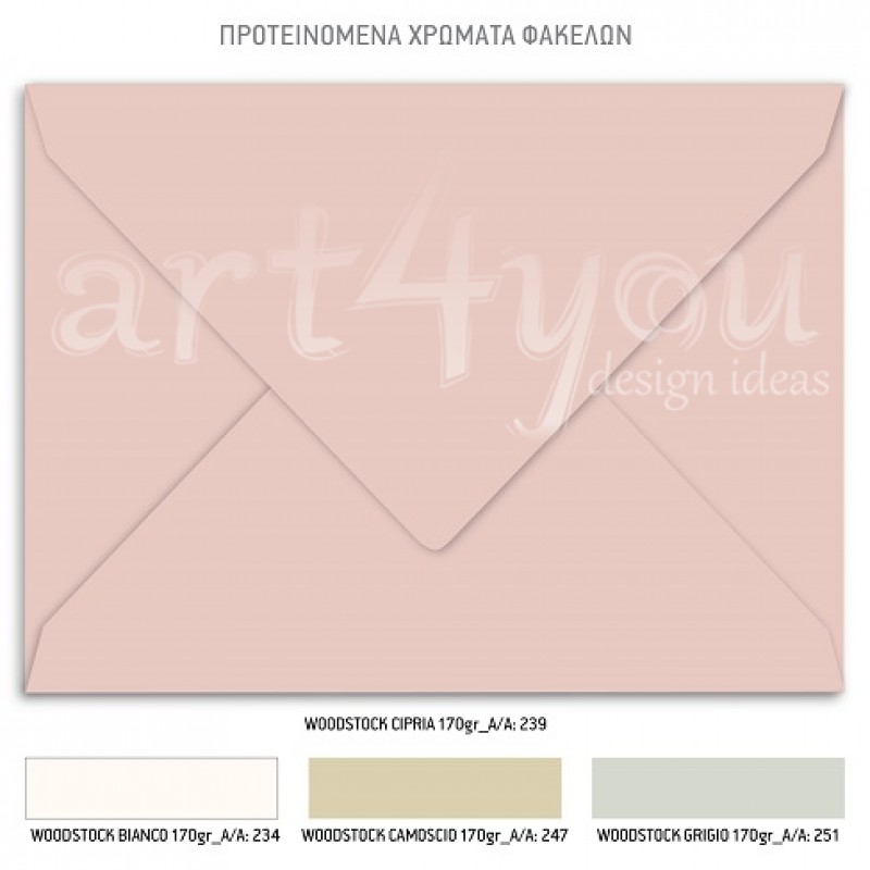 Το προσκλητήριο διαθέτει φάκελο διάστασης 19,5x14,5cm σε χαρτί της επιλογής σας από τους αναγραφόμενους κωδικούς.
