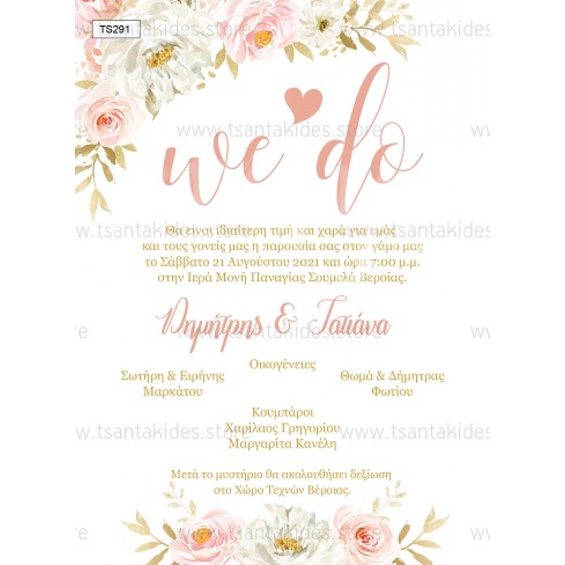 Προσκλητήριο γάμου με dusty pink floral σχεδιασμό.