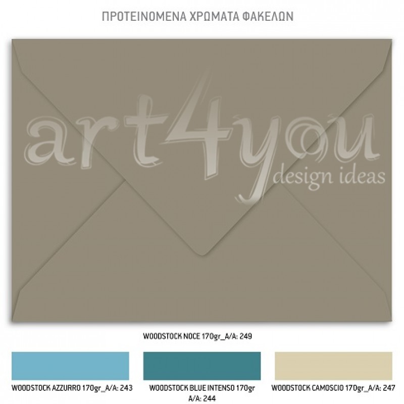 Το προσκλητήριο διαθέτει φάκελο διάστασης 19,5x14,5cm σε χαρτί της επιλογής σας από τους αναγραφόμενους κωδικούς.
