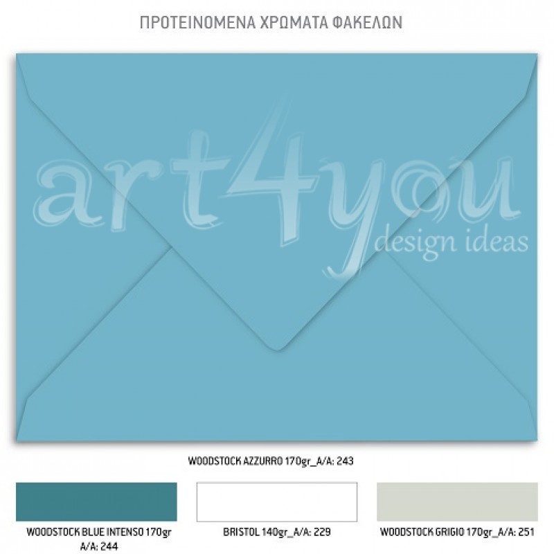 Το προσκλητήριο διαθέτει φάκελο διάστασης 19,5x14,5cm σε χαρτί της επιλογής σας από τους αναγραφόμενους κωδικούς.