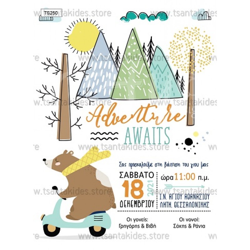 Προσκλητήριο βάπτισης για αγόρι με θέμα adventure
