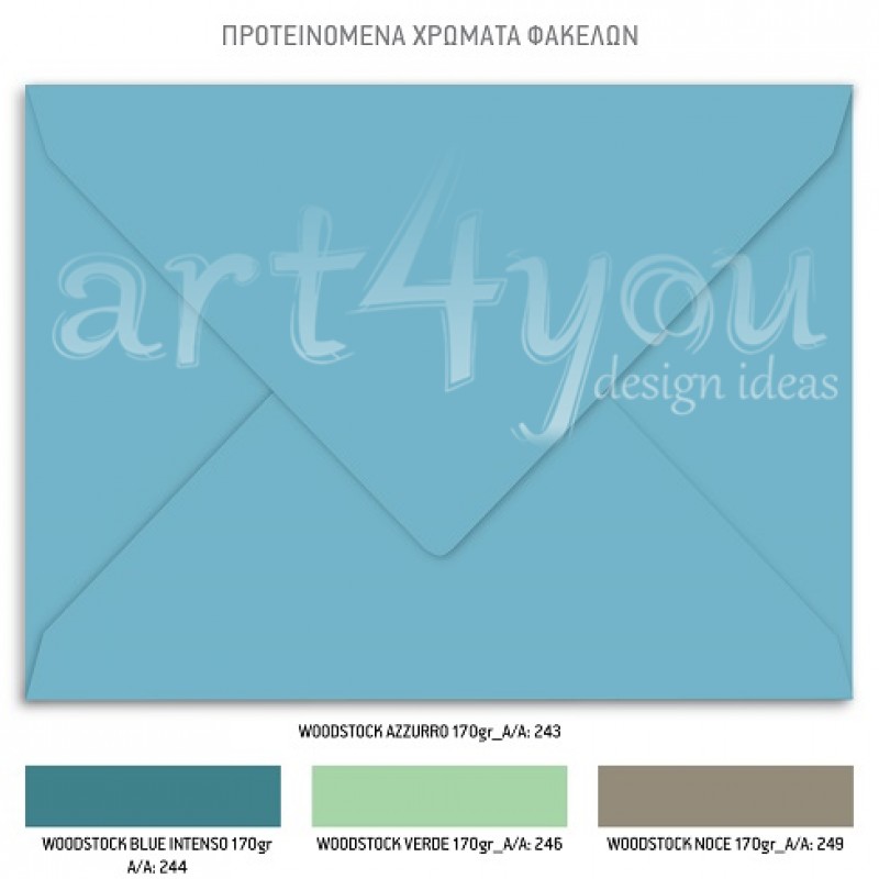 Το προσκλητήριο διαθέτει φάκελο διάστασης 19,5x14,5cm σε χαρτί της επιλογής σας από τους αναγραφόμενους κωδικούς.