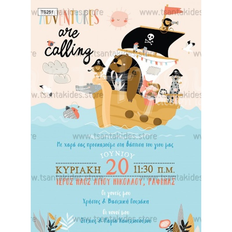 Προσκλητήριο βάπτισης για αγόρι με θέμα sailing adventure