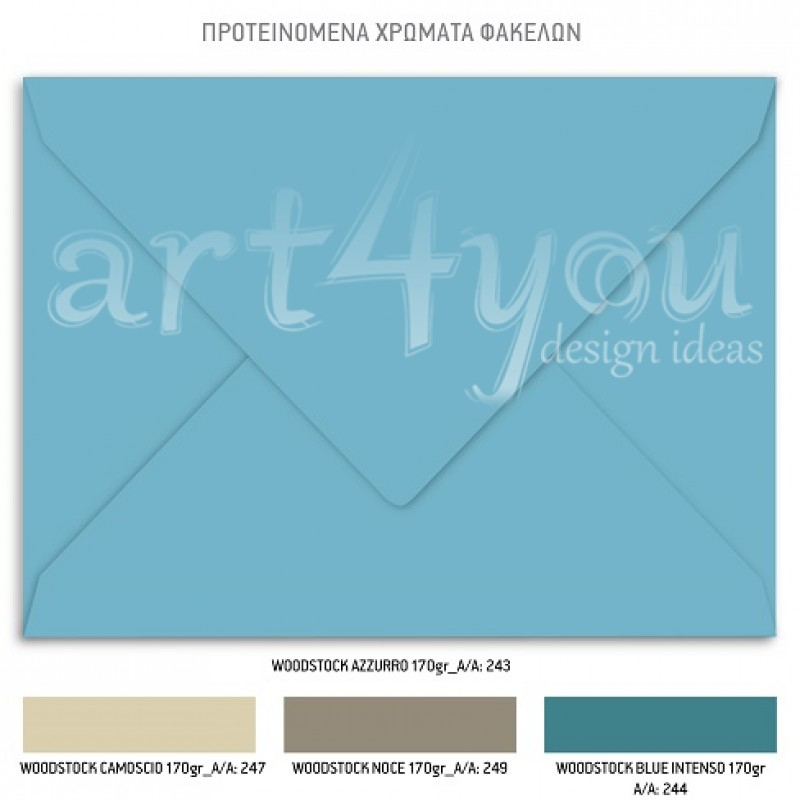 Το προσκλητήριο διαθέτει φάκελο διάστασης 19,5x14,5cm σε χαρτί της επιλογής σας από τους αναγραφόμενους κωδικούς.
