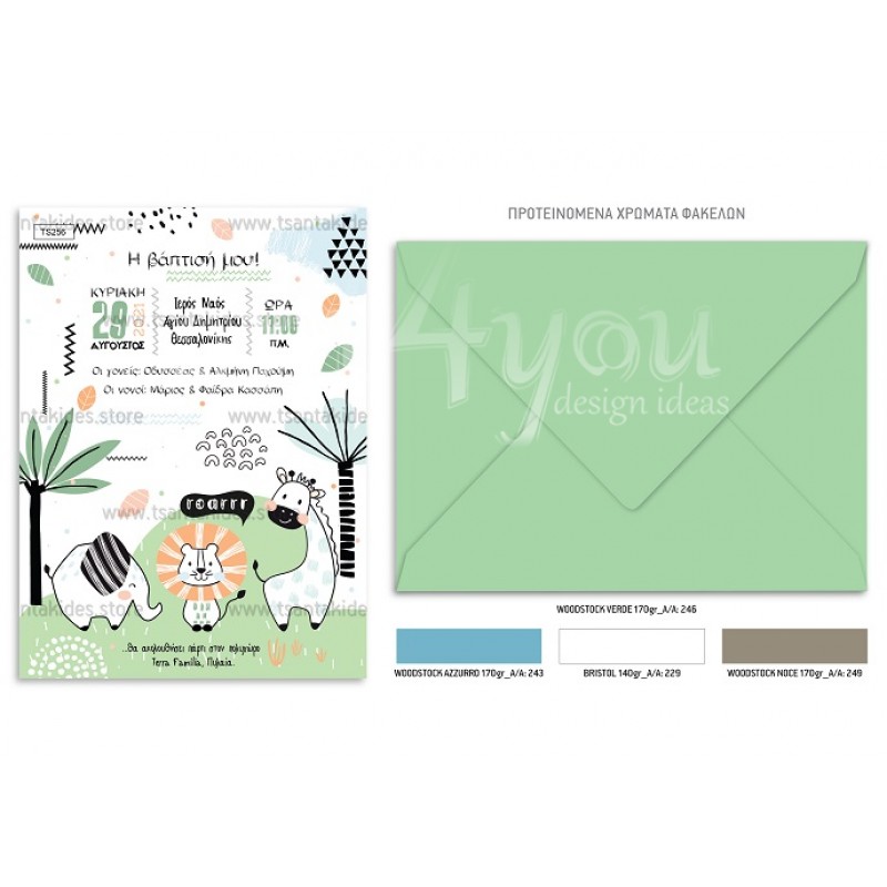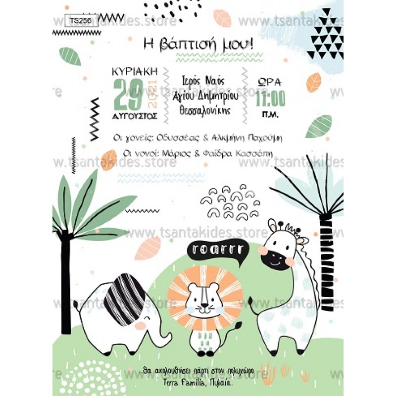 Προσκλητήριο βάπτισης για αγόρι με θέμα τα ζώα της ζούγκλας.