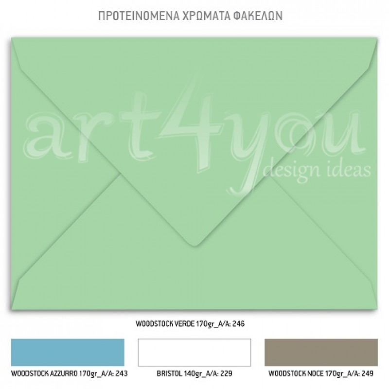 Το προσκλητήριο διαθέτει φάκελο διάστασης 19,5x14,5cm σε χαρτί της επιλογής σας από τους αναγραφόμενους κωδικούς.