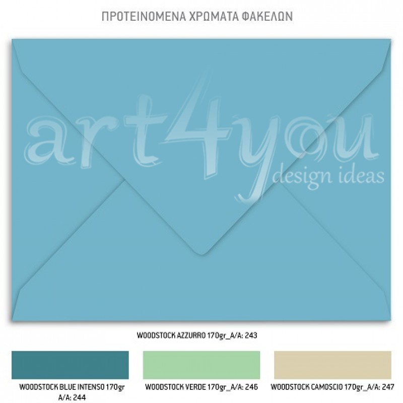Το προσκλητήριο διαθέτει φάκελο διάστασης 19,5x14,5cm σε χαρτί της επιλογής σας από τους αναγραφόμενους κωδικούς.