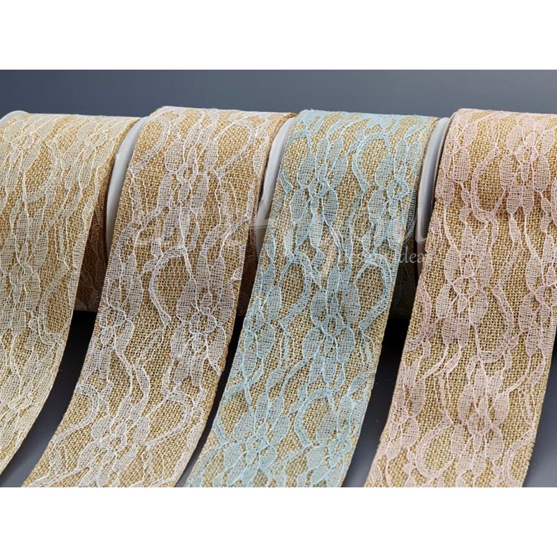Κορδέλα καμβά με δαντέλα 6.5εκ. σε εκρού, λευκό, σιέλ και ροζ