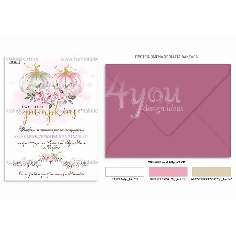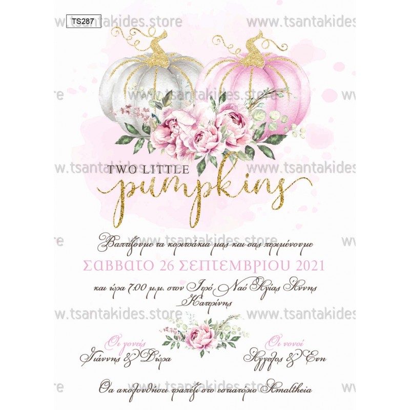 Προσκλητήριο βάπτισης για δίδυμα με θέμα sweet little pumpkins