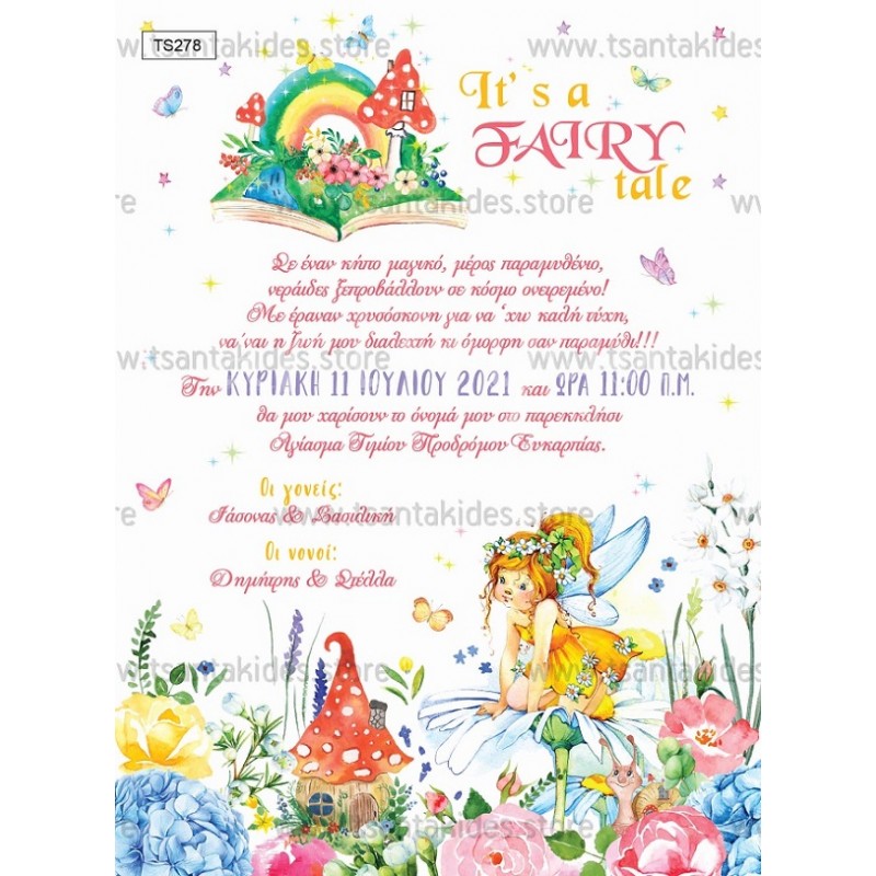 Προσκλητήριο βάπτισης για κορίτσι με θέμα τη νεράιδα στο μαγεμένο δάσος.