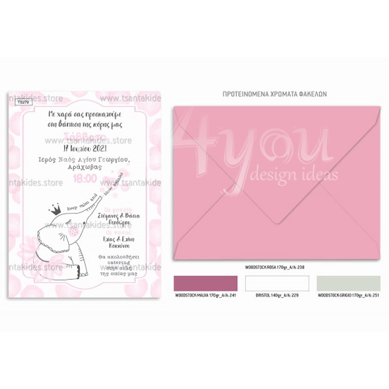 Προσκλητήριο βάπτισης για κορίτσι με θέμα το μικρό ελεφαντάκι.