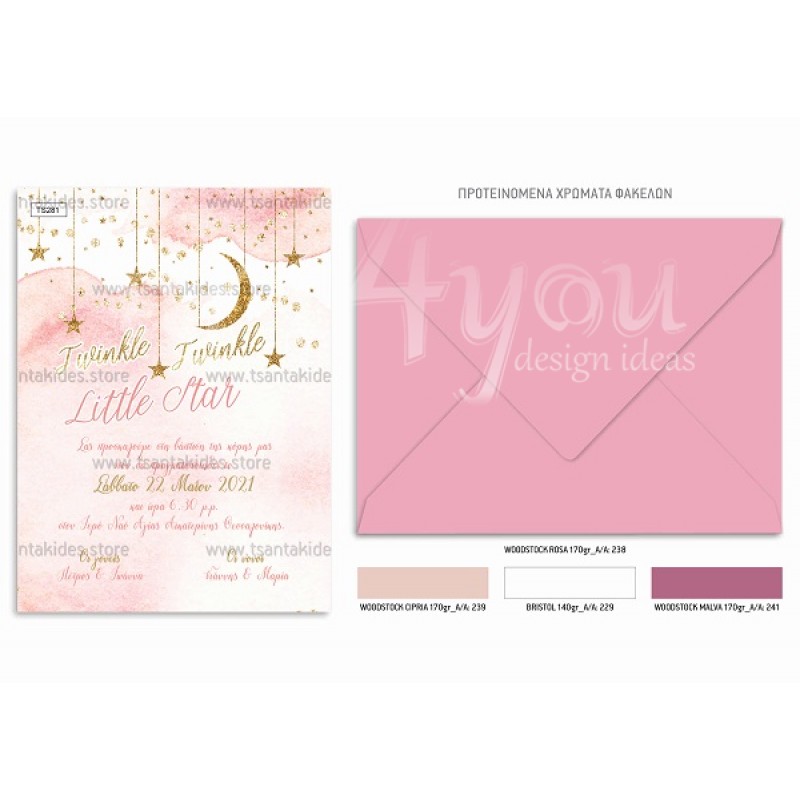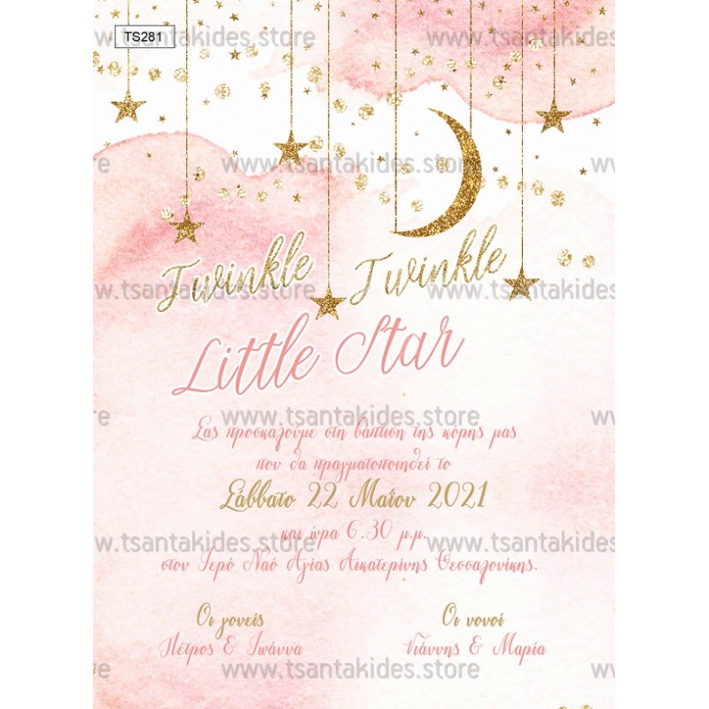 Προσκλητήριο βάπτισης για κορίτσι με twinkle little stars.