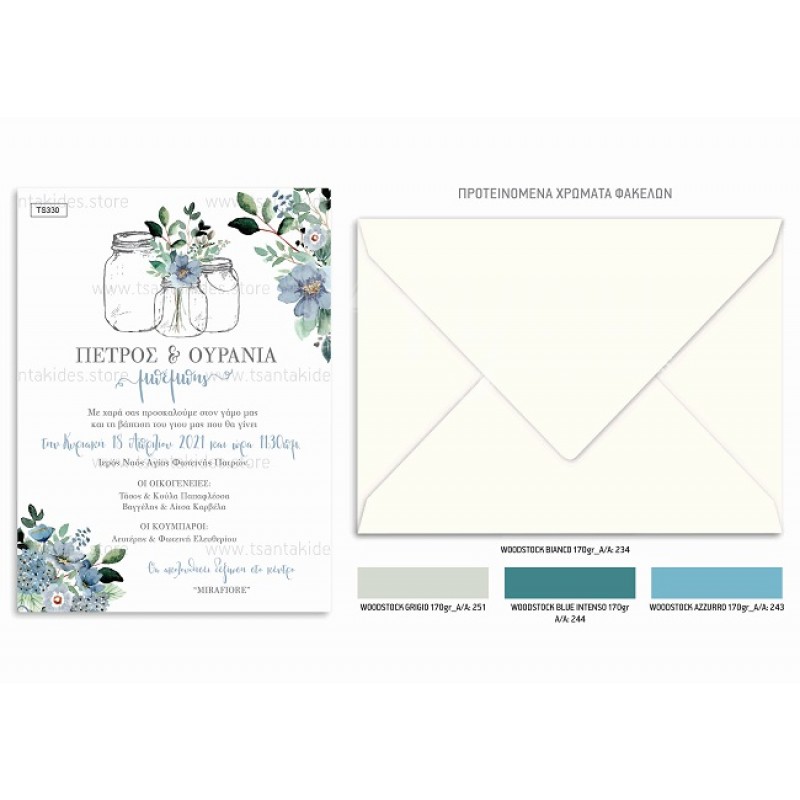 Το προσκλητήριο διαθέτει φάκελο διάστασης 19,5x14,5cm σε χαρτί της επιλογής σας από τους αναγραφόμενους κωδικούς.