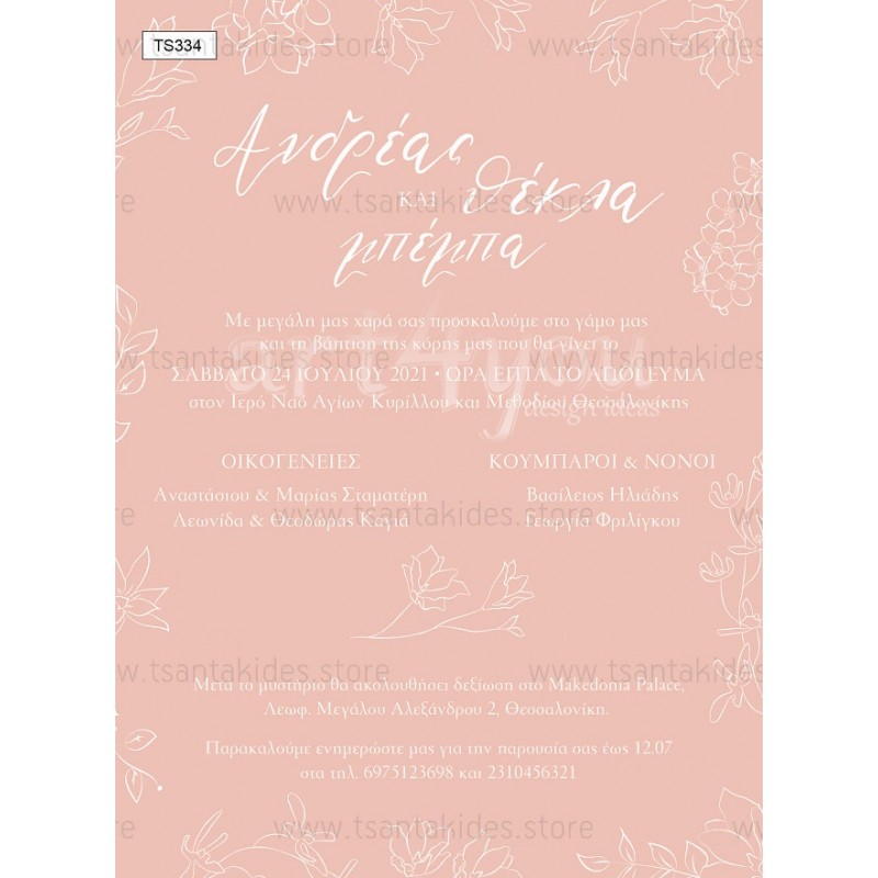 Η κάρτα του προσκλητηρίου είναι τυπωμένη σε λευκό ματ χαρτί 250γρ.
