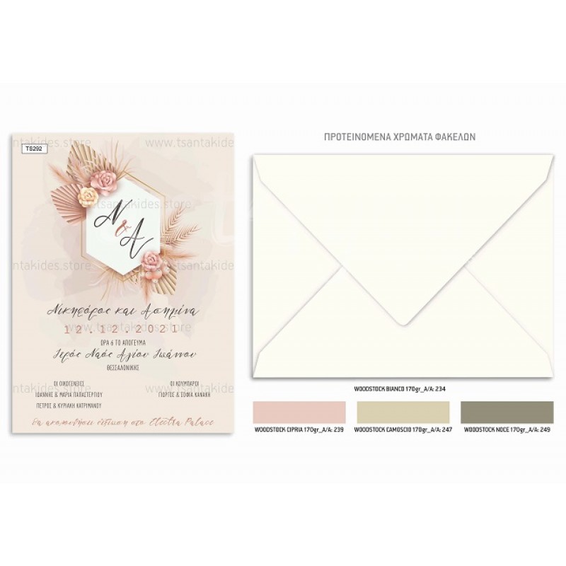 Το προσκλητήριο διαθέτει φάκελο διάστασης 19,5x14,5cm σε χαρτί της επιλογής σας από τους αναγραφόμενους κωδικούς.