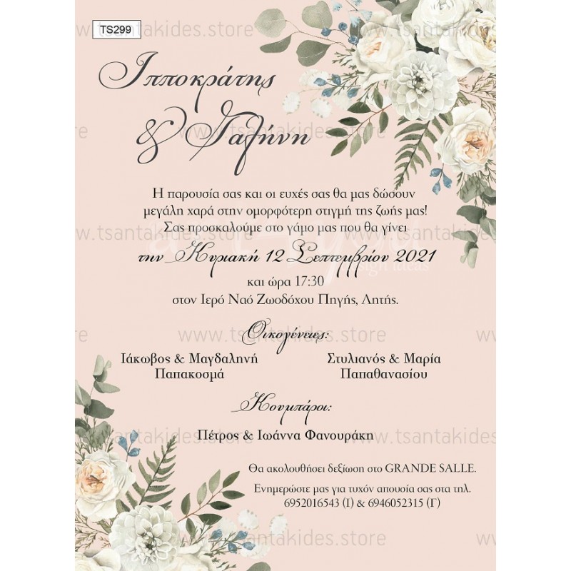 Προσκλητήριο γάμου με floral σχεδιασμό από τριαντάφυλλα και ορχιδέες