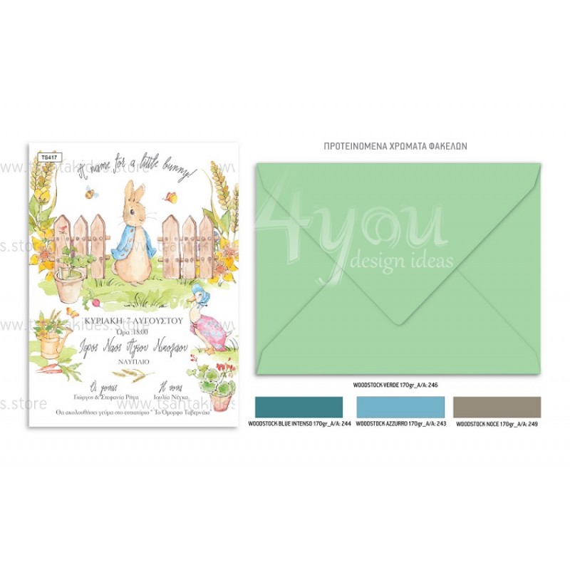 Προσκλητήριο βάπτισης για αγόρι με θέμα Peter Rabbit